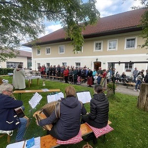 Feierliche Maiandacht mit Bittprozession im Moarhof bei Fam. Reiter in Gschwandt