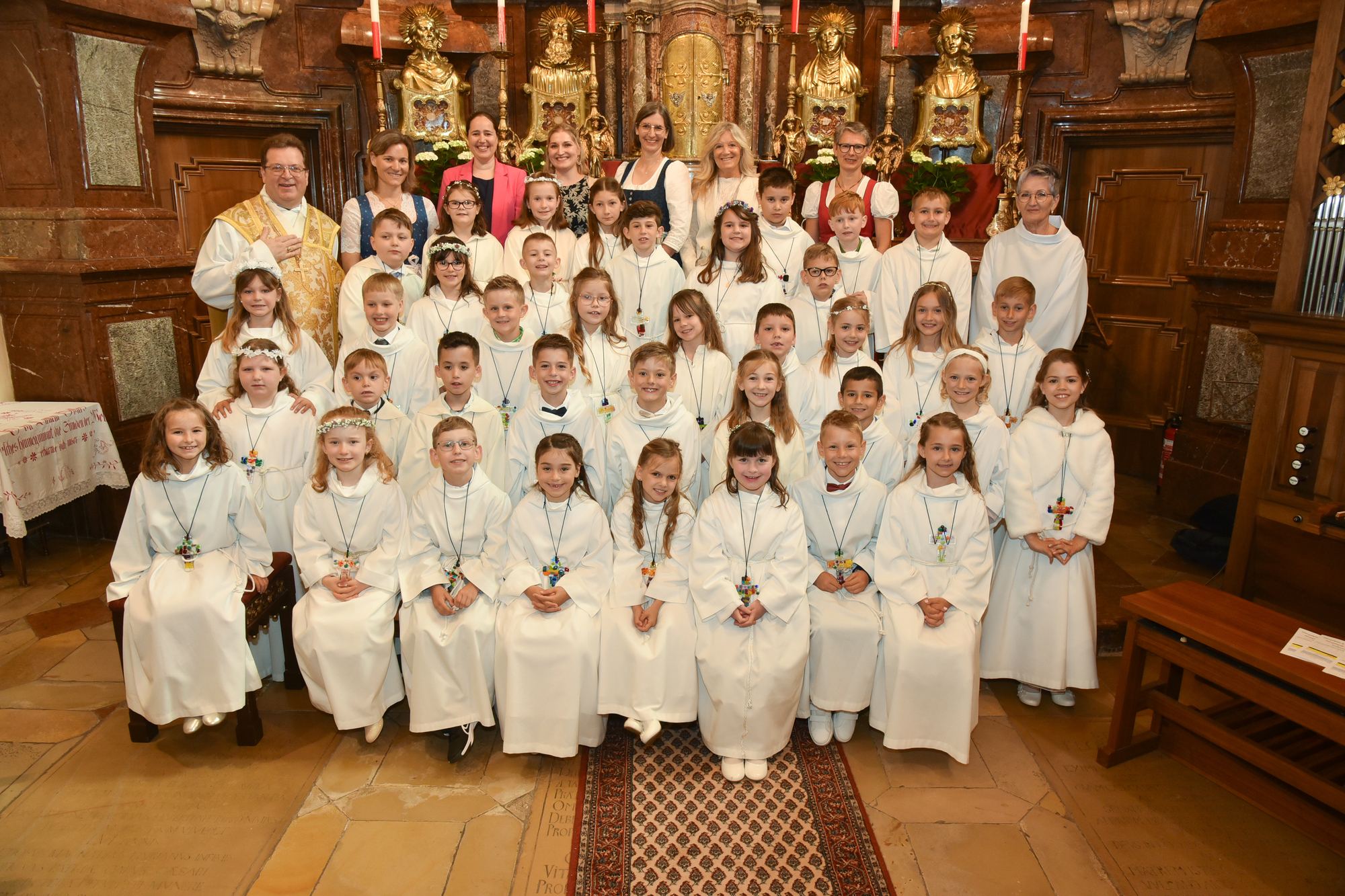 Am 18. Mai 2025 durften viele Kinder unserer Pfarre zum ersten Mal die heilige Kommunion empfangen. Begleitet von Eltern, Geschwistern, Verwandten, Lehrerkräften zogen sie feierlich vom Stiftshof in die Kirche ein – die Vorfreude war bei jung und alt spürbar, die Stimmung festlich.