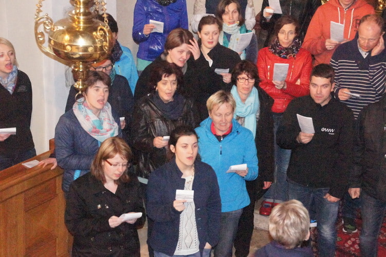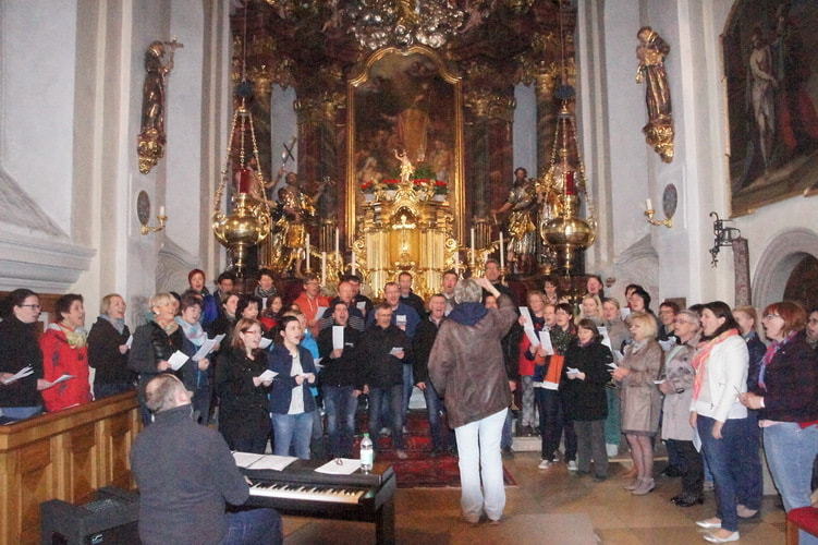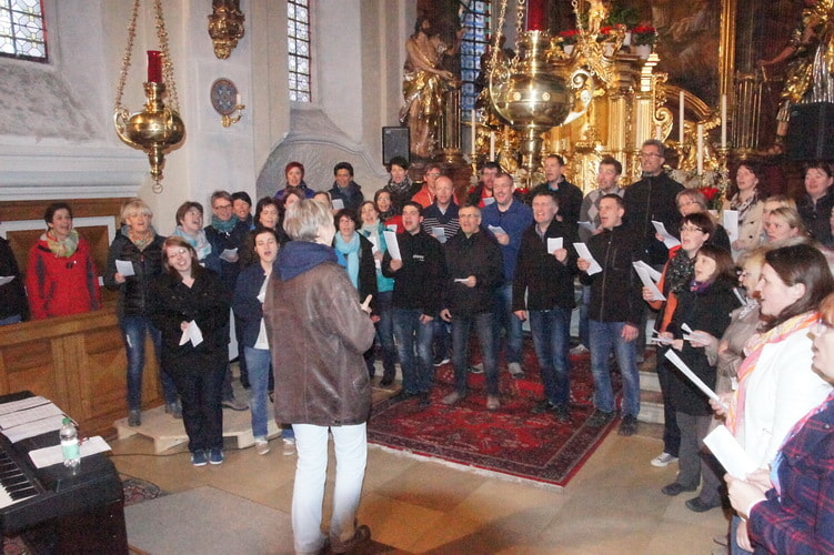Nicht nur Mitglieder vom Chor4you oder Peuerbacher waren dabei; der Workshop begeisterte zahlreiche SängerInnen aus den verschiedensten Pfarren der Umgebung. So waren wir insgesamt ein Chor bestehend aus 56 TeilnehmerInnen.