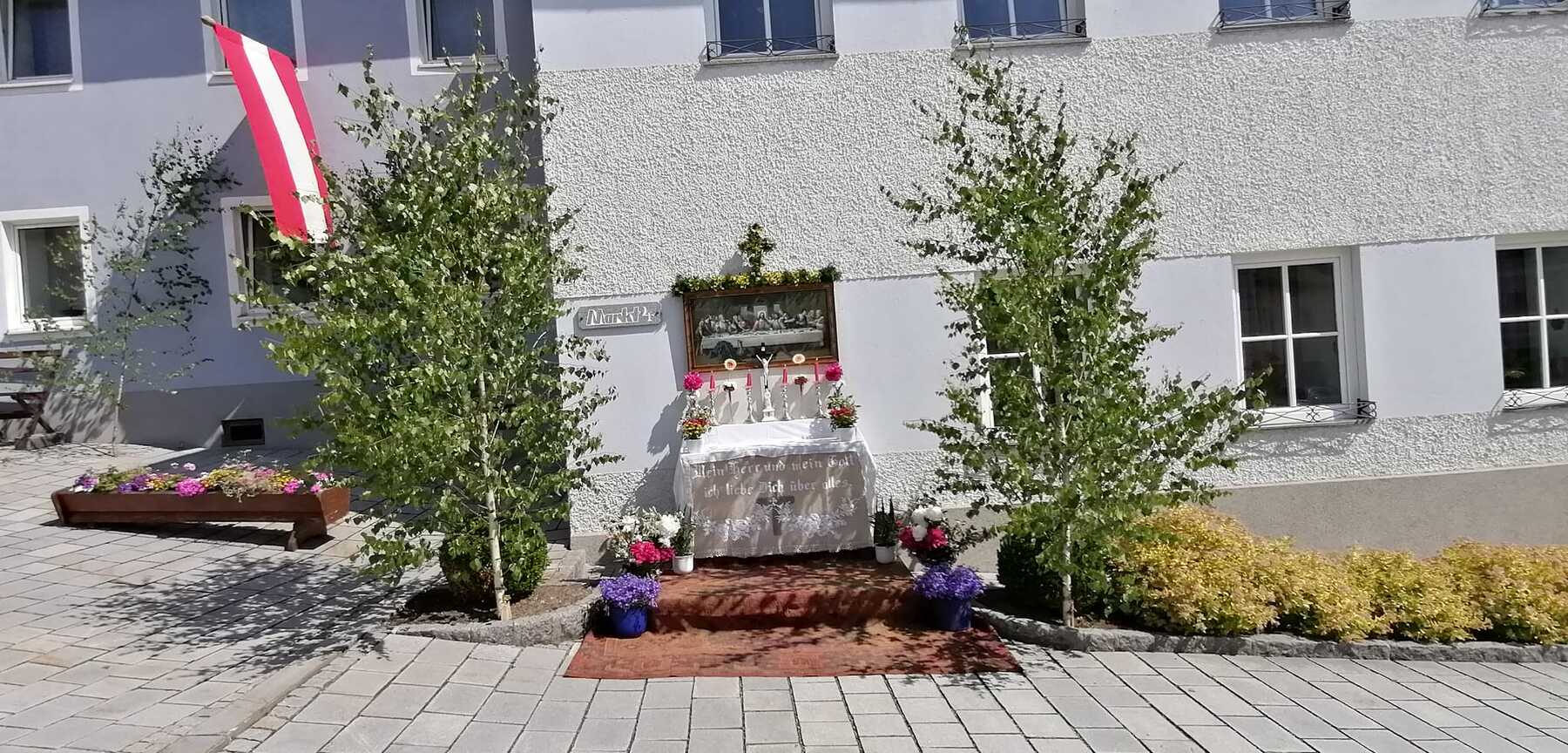 Danke für das Aufstellen und Schmücken der Altäre, für die Bereitstellung und das Aufstellen der Birken entlang der Prozession und für das Mitfeiern dieses schönen Festes.