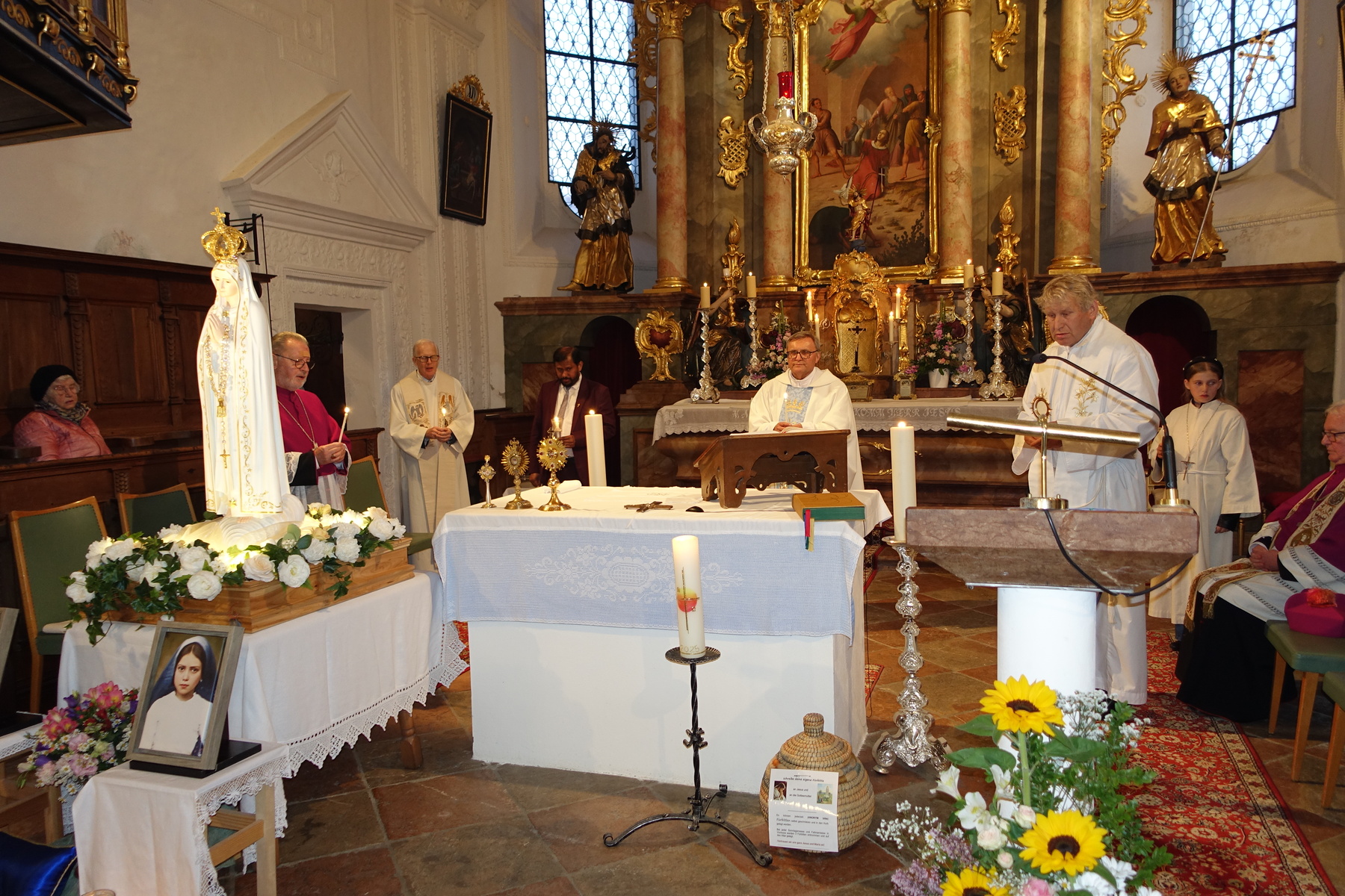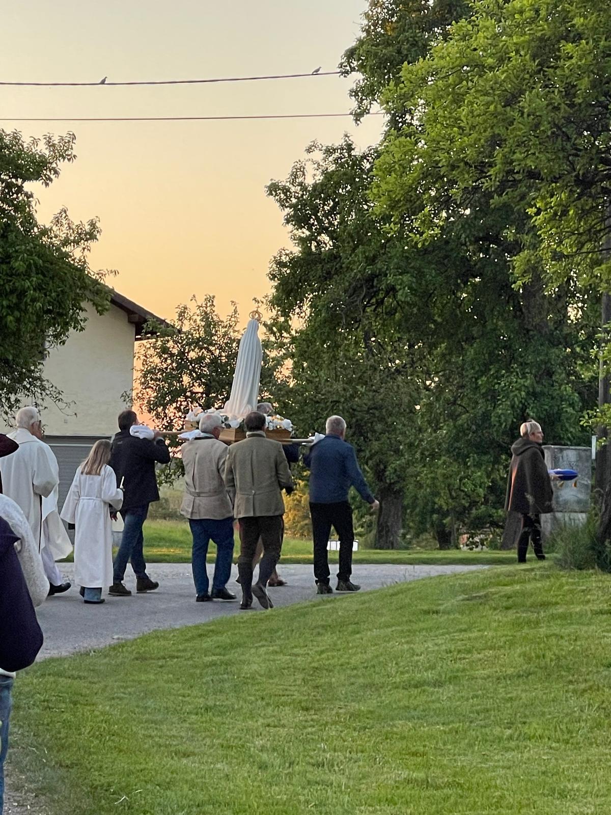 Am Dienstag, den 13. Mai 2025 lud die Pfarrgemeinde Feldkirchen in die Filialkirche nach Vormoos ein. Alle anwesenden Gläubigen und alle Priester aus dem Dekanat Mattighofen feierten gemeinsam Eucharistie. Zelebrant war Dechant Marek Michalowski. Im gemeinsamen Gebet verbunden baten sie im Besonderen um Schutz und Segen zur Heiligen Mutter Gottes Maria für die sich in Gründung befindende Pfarre Mattigtal. Die Statue der Fatima Pilgermadonna wurde im Zuge einer Lichterprozession durch den Ort getragen. Im Beisein der Reliquien der Seherkinder von Fatima konnten die Gottesdienstbesucher:innen bei den anwesenden Priestern den Reliquiensegen empfangen.